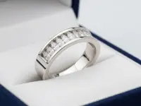 You have a number of options when it comes to selecting your perfect channel set engagement ring. Many channel set rings consist of a simple band of precious metal with round brilliant or baguette diamonds filling the channel. Smaller accent diamonds offer a classic look, while a channel set engagement ring with larger accent diamonds is ideal for a more glamorous style. Channel set wedding bands or eternity rings are also an increasingly popular style, including in mens ring designs!